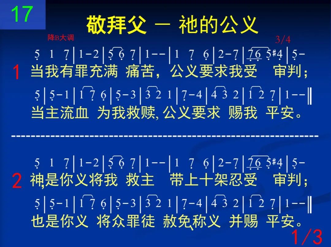 当我有罪充满痛苦,公义要求我受审判;当主流血为我救赎,公义要求赐我平安。