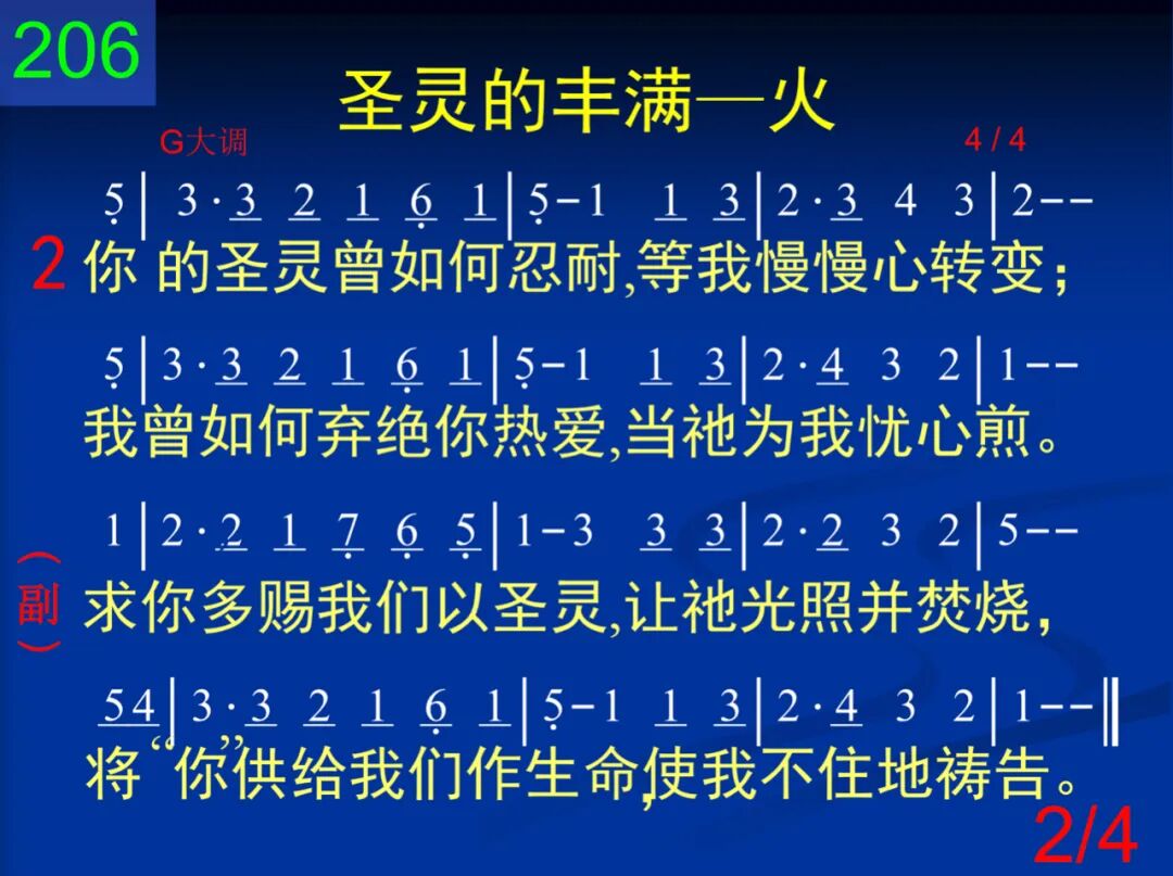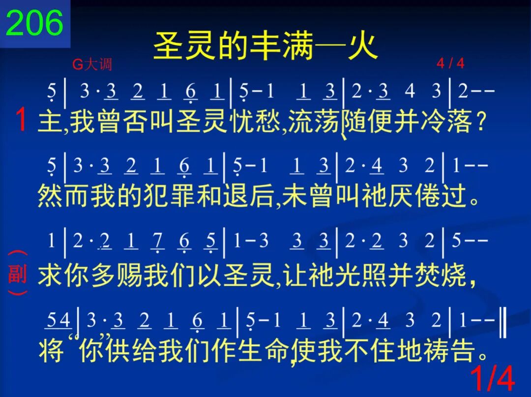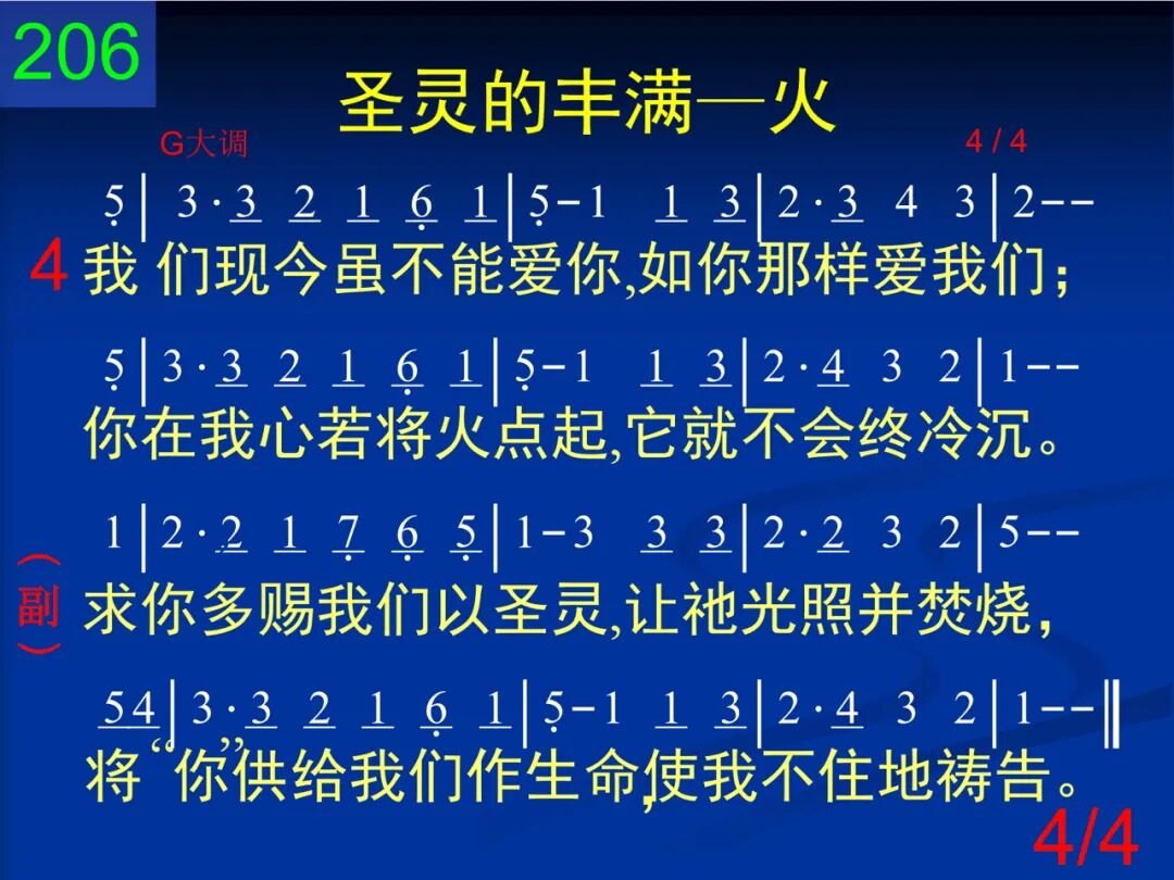 主,我曾否叫圣灵忧愁,流荡、随便并冷落?然而我的犯罪和退后,未曾叫祂厌倦过。 求你多赐我们以圣灵,让祂光照并焚烧,将“你”供给我们作生命,使我不住的祷告。 二 你的圣灵曾如何忍耐,等我慢慢心转变;我曾如何弃绝你热爱,当祂为我忧心煎。 求你多赐我们以圣灵,让祂光照并焚烧,将“你”供给我们作生命,使我不住的祷告。 三 你的圣灵今在我心内,我要以祂为我主;因为爱你使我能敬畏你的最小的宣布。 求你多赐我们以圣灵,让祂光照并焚烧,将“你”供给我们作生命,使我不住的祷告。 四 我们现今虽不能爱你,如你那样爱我们;你在我心若将火点起,它就不会终冷沉。 求你多赐我们以圣灵,让祂光照并焚烧,将“你”供给我们作生命,使我不住的祷告。