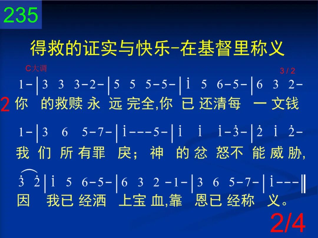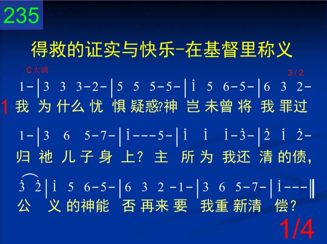 我为什么忧惧疑惑?神岂未曾将我罪过归祂儿子身上?主所为我还清的债,公义的神能否再来要我重新清偿? 二 你的救赎永远完全,你已还清每一文钱─我们所有罪戾;神的忿怒不能威胁,因我已经洒上宝血,靠恩已经称义。 三 你既为我领得赦免,你既给我白白恩典─罪债一起清算;神就不会两面讨偿:先在我的中保身上…后又要我归还。 四 所以我心,你当安息,你的救主所有功绩,已使你得开释;当信祂的有效宝血,不怕神再将你弃绝,因主已为你死。