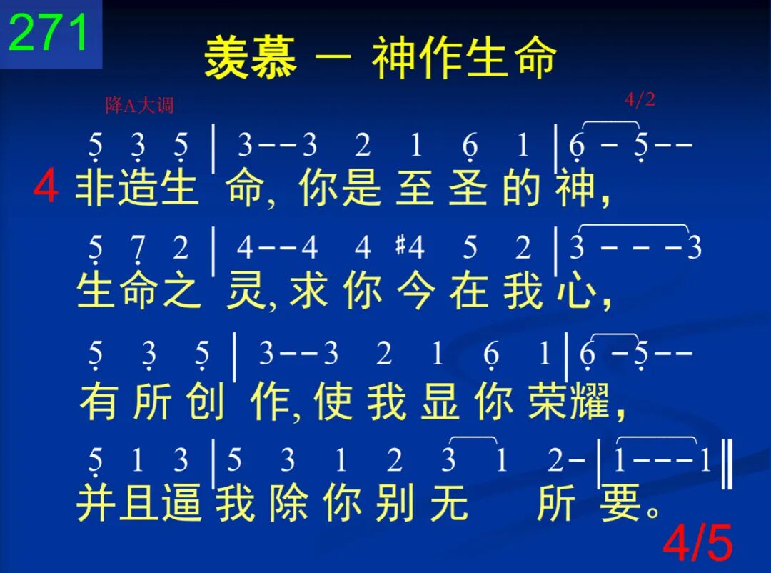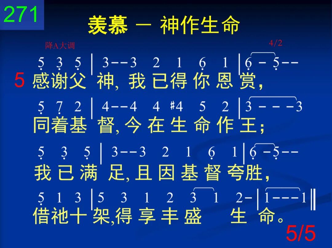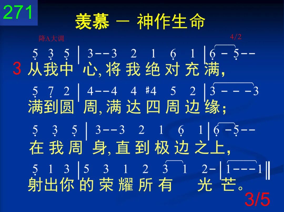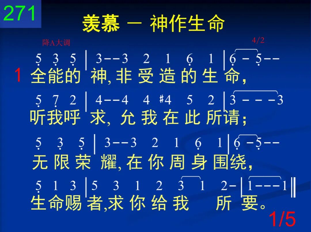 全能的神,非受造的生命,听我呼求,允我在此所请;无限荣耀,在你周身围绕,生命赐者,求你给我所要。 二 藉着基督所经历的十架,藉着祂死所成功的击杀,黑暗权势,救我全然脱离,迁我到你爱子光明国里。 三 从我中心,将我绝对充满,满到圆周,满达四周边缘;在我周身,直到极边之上,射出你的荣耀所有光芒。 四 非造生命,你是至圣的神,生命之灵,求你今在我心,有所创作,使我显你荣耀,并且逼我除你别无所要。 五 感谢父神,我已得你恩赏,同着基督,今在生命作王;我已满足,且因基督夸胜,藉祂十架,得享丰盛生命。