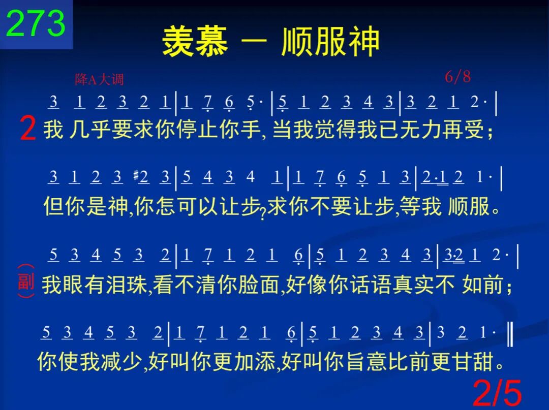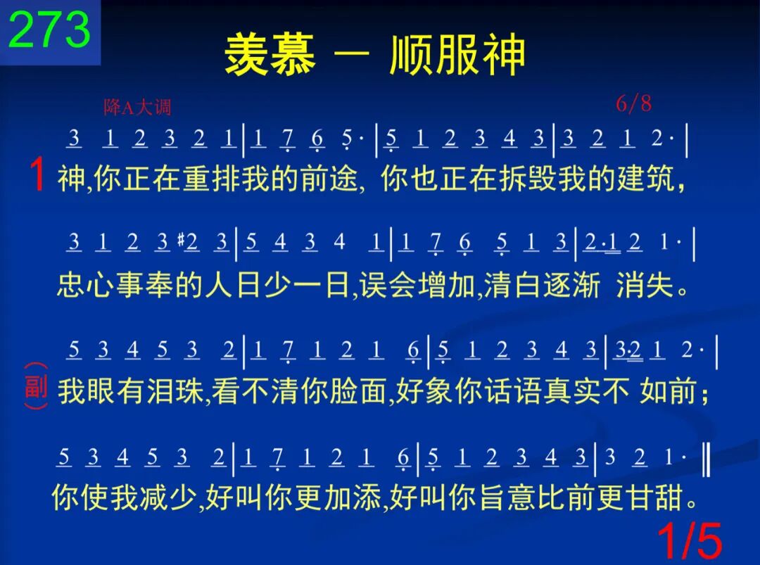 神,你正在重排我的前途,你也正在拆毁我的建筑,忠心事奉的人日少一日,误会增加,清白逐渐消失。 我眼有泪珠,看不清你脸面,好像你话语真实不如前;你使我减少,好叫你更加添,好叫你旨意比前更甘甜。 二 我几乎要求你停止你手,当我觉得我已无力再受;但你是神,你怎可以让步?求你不要让步,等我顺服。 我眼有泪珠,看不清你脸面,好像你话语真实不如前;你使我减少,好叫你更加添,好叫你旨意比前更甘甜。 三 如果你的旨意和你喜乐乃是在乎我负痛苦之轭,就愿我的喜乐乃是在乎顺服你的旨意来受痛苦。 我眼有泪珠,看不清你脸面,好像你话语真实不如前;你使我减少,好叫你更加添,好叫你旨意比前更甘甜。 四 好像你的喜乐所需代价乃是需我受你阻扼倒下,所以我就欢迎你的阻扼,好叫我能使你的心喜乐。 我眼有泪珠,看不清你脸面,好像你话语真实不如前;你使我减少,好叫你更加添,好叫你旨意比前更甘甜。 五 你将车辆赐与别人乘坐,你使他们从我头上轧过;我的所有你正下手剥夺,求你留下剥夺的手给我。 我眼有泪珠,看不清你脸面,好像你话语真实不如前;你使我减少,好叫你更加添,好叫你旨意比前更甘甜。