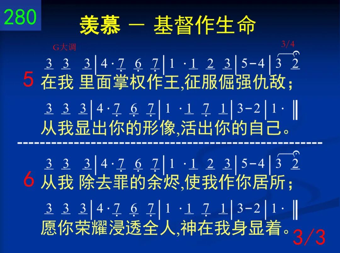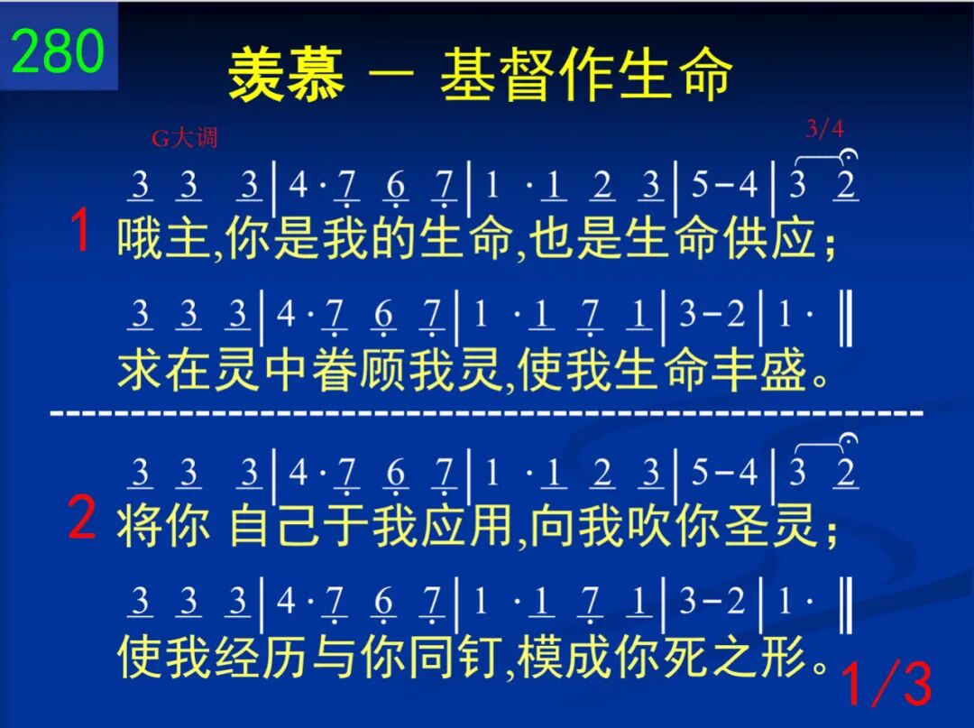 哦主,你是我的生命,也是生命供应;求在灵中眷顾我灵,使我生命丰盛。 二 将你自己于我应用,向我吹你圣灵;使我经历与你同钉,模成你死之形。 三 你已胜过阴府、撒但,但仍与我相争;愿你工作在我里面,杀死并且供应。 四 当我天然被你治死,你就应用于我;将我埋葬,永不再世,使我同你活着。 五 在我里面掌权作王,征服倔强仇敌;从我显出你的形像,活出你的自己。 六 从我除去罪的余烬,使我作你居所;愿你荣耀浸透全人,神在我身显著。