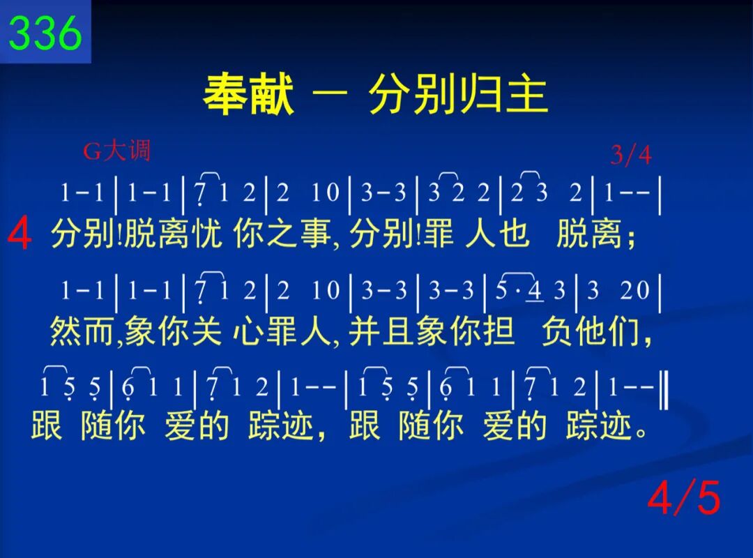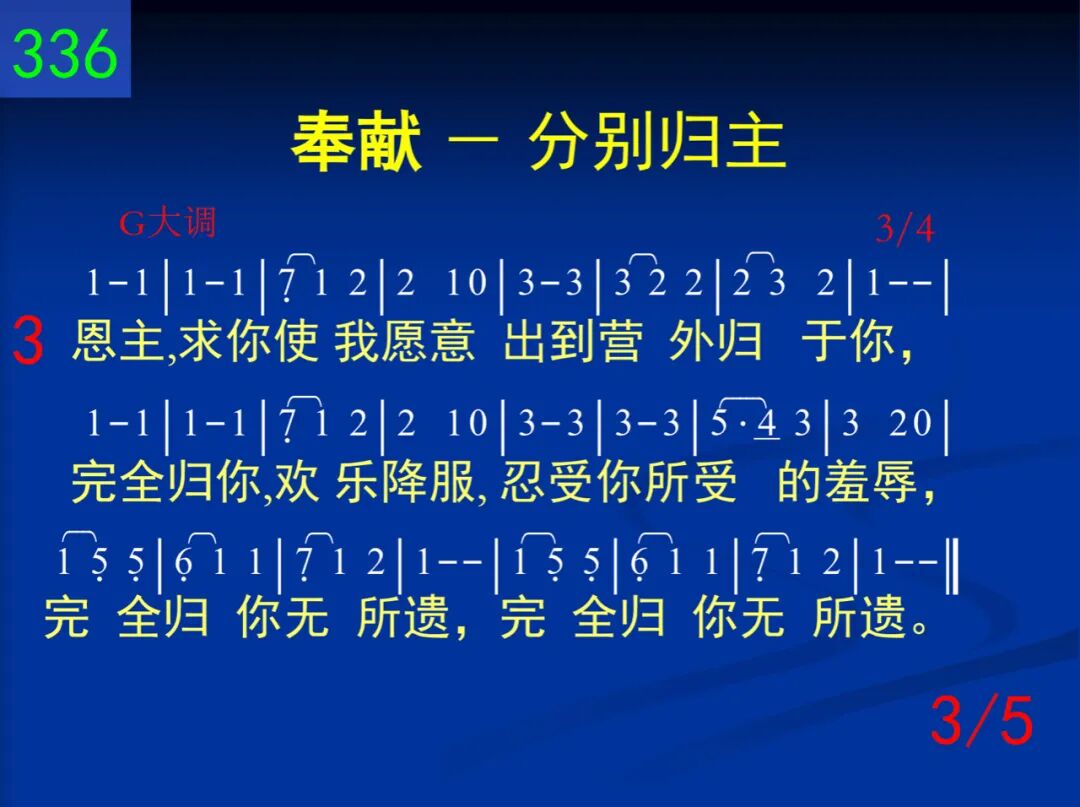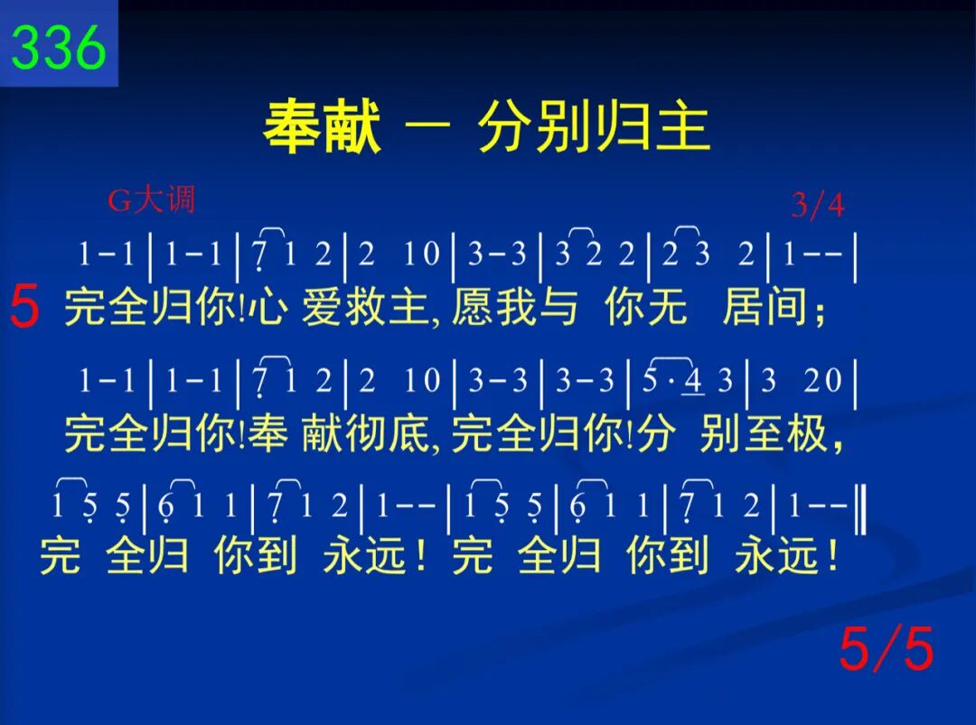圣洁、欢乐,何等分别!惟有如此能蒙福;脱开主外一切事物,惟主是我所爱所慕,单单安息在基督,单单安息在基督。 二 基督呼召,要我分别,祂已带路如此行;祂的生活将此说明,祂的生活也是例证,谁愿随从祂带领?谁愿随从祂带领? 三 恩主,求你使我愿意出到营外归于你,完全归你,欢乐降服,忍受你所受的羞辱,完全归你无所遗,完全归你无所遗。 四 分别!脱离忧你之事,分别!罪人也脱离;然而,像你关心罪人,并且像你担负他们,跟随你爱的踪迹,跟随你爱的踪迹。 五 完全归你!心爱救主,愿我与你无居间;完全归你!奉献彻底,完全归你!分别至极,完全归你到永远!完全归你到永远!