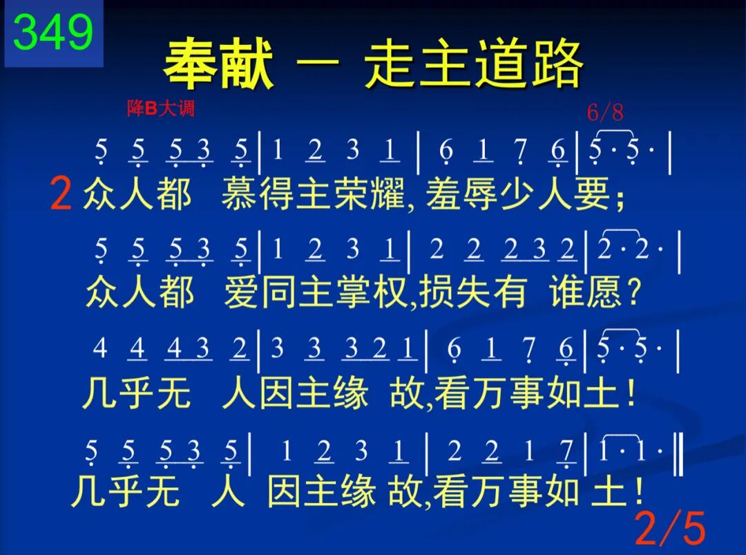 众人涌进主的国度,十架少人负;众人争夺主的赏赐,世界有谁辞?人虽无心走主道路,仍想主祝福!人虽无心走主道路,仍想主祝福! 二 众人都慕得主荣耀,羞辱少人要;众人都爱同主掌权,损失有谁愿?几乎无人因主缘故,看万事如土! 三 多人都贪享主甘旨,少有愿禁食!多人都喜登主宝座,少有愿飘泊!同祂唱诗虽然有人,儆醒却不能。 四 众人都想同主高贵,卑贱却都畏。当主凡事为他预备,他就大赞美;当主稍微求他一点,就立发怨言。 五 但那诚实爱主的人,祸福都不问,就是他们宝贵心血,也愿为主舍;求主给我这样心志,赤忠忘生死。