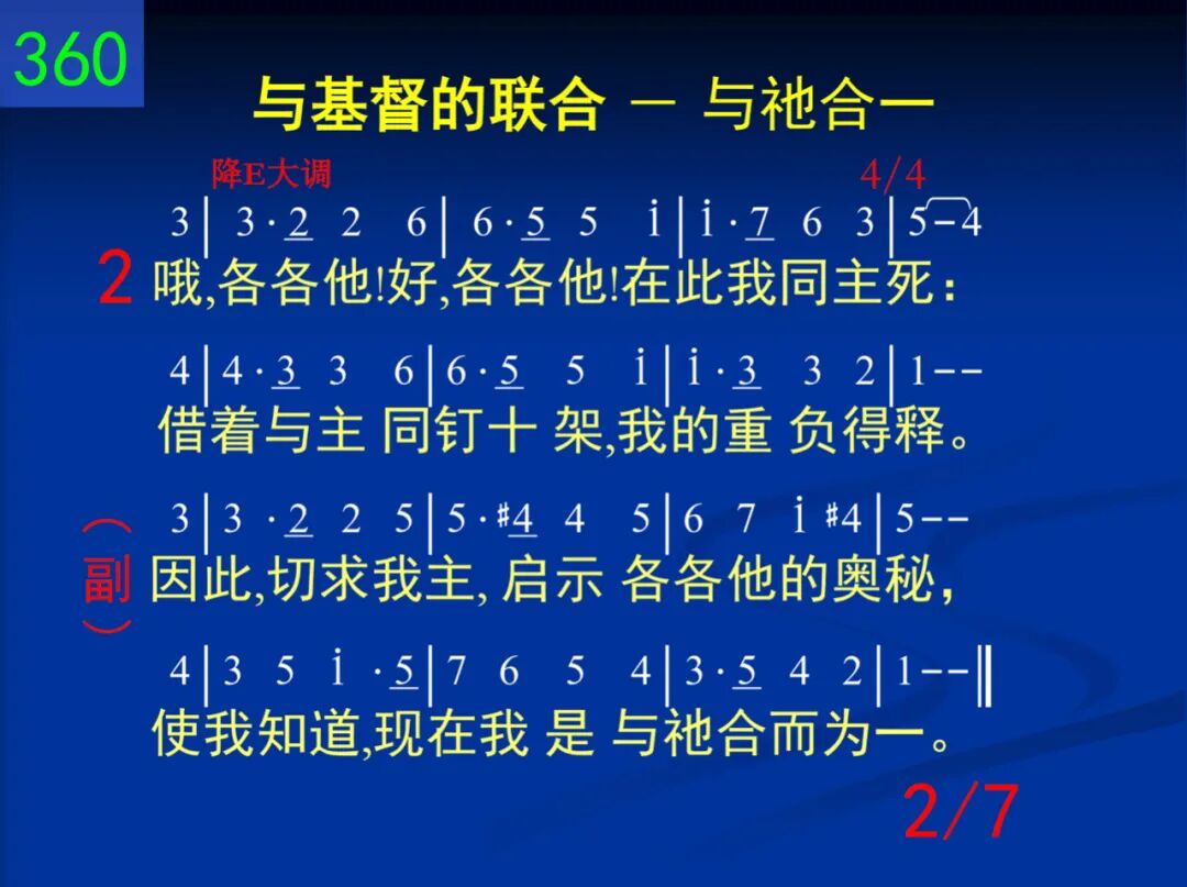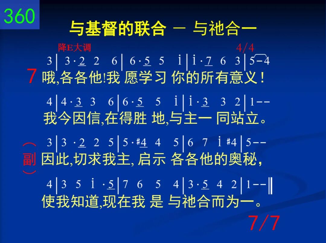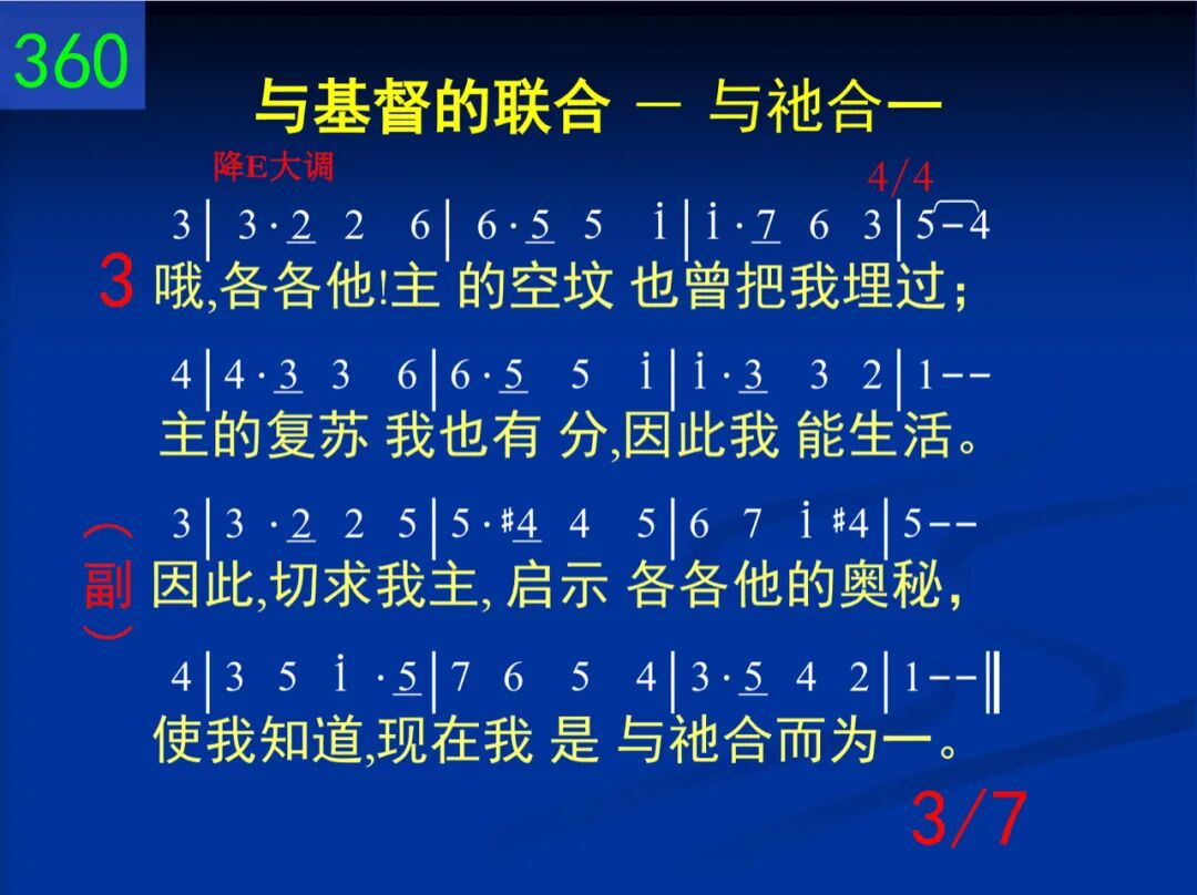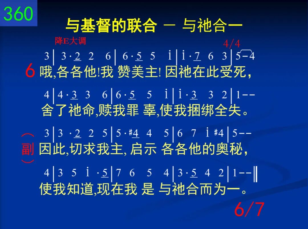 哦,各各他!好,各各他!我主在此受死;祂流宝血,祂钉苦架,使我从罪得释。 因此,切求我主,启示各各他的奥秘,使我知道,现在我是与祂合而为一。 二 哦,各各他!好,各各他!在此我同主死:藉着与主同钉十架,我的重负得释。 因此,切求我主,启示各各他的奥秘,使我知道,现在我是与祂合而为一。 三 哦,各各他!主的空坟也曾把我埋过;主的复苏我也有分,因此我能生活。 因此,切求我主,启示各各他的奥秘,使我知道,现在我是与祂合而为一。 四 哦,各各他!撒但全军在此被主羞辱;奉着主名,邪灵、魔君,向我也当俯伏。 因此,切求我主,启示各各他的奥秘,使我知道,现在我是与祂合而为一。 五 哦,各各他!我有主名,在争战时已足;仇敌一听,立即亡命,不能抵挡我主。 因此,切求我主,启示各各他的奥秘,使我知道,现在我是与祂合而为一。 六 哦,各各他!我赞美主!因祂在此受死,舍了祂命,赎我罪辜,使我捆绑全失。 因此,切求我主,启示各各他的奥秘,使我知道,现在我是与祂合而为一。 七 哦,各各他!我愿学习你的所有意义!我今因信,在得胜地,与主一同站立。 因此,切求我主,启示各各他的奥秘,使我知道,现在我是与祂合而为一。