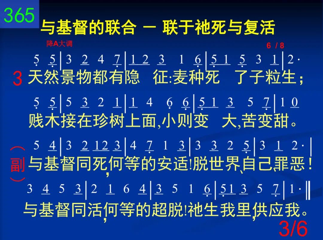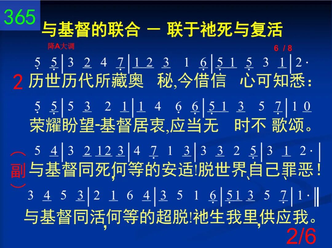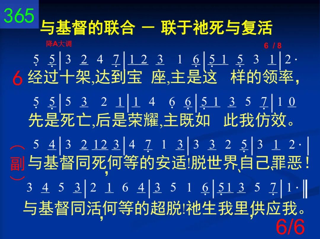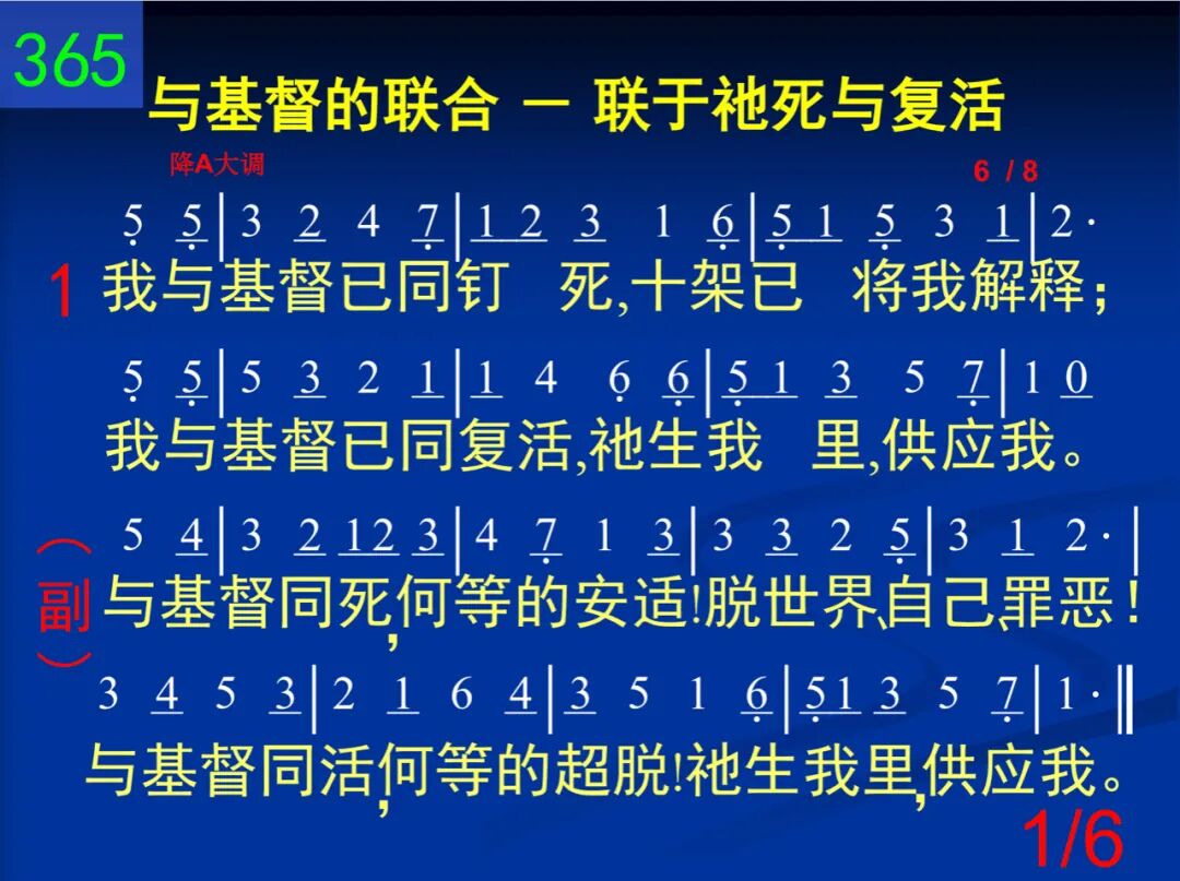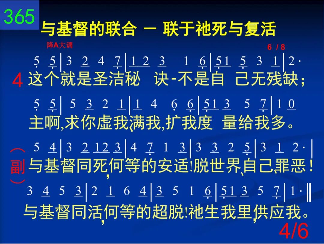 我与基督已同钉死,十架已将我解释;我与基督已同复活,祂生我里,供应我。 与基督同死,何等的安适!脱世界、自己、罪恶!与基督同活,何等的超脱!祂生我里,供应我。 二 历世历代所藏奥秘,今藉信心可知悉:荣耀盼望─基督居衷,应当无时不歌颂。 与基督同死,何等的安适!脱世界、自己、罪恶!与基督同活,何等的超脱!祂生我里,供应我。 三 天然景物都有隐征:麦种死了子粒生;贱木接在珍树上面,小则变大,苦变甜。 与基督同死,何等的安适!脱世界、自己、罪恶!与基督同活,何等的超脱!祂生我里,供应我。 四 这个就是圣洁秘诀─不是自己无残缺;主阿,求你虚我、满我,扩我度量给我多。 与基督同死,何等的安适!脱世界、自己、罪恶!与基督同活,何等的超脱!祂生我里,供应我。 五 这个会使病痛得治─只要你向自己死,并以主的生命能力作为全人的供给。 与基督同死,何等的安适!脱世界、自己、罪恶!与基督同活,何等的超脱!祂生我里,供应我。 六 经过十架,达到宝座,主是这样的领率,先是死亡,后是荣耀,主既如此我仿效。 与基督同死,何等的安适!脱世界、自己、罪恶!与基督同活,何等的超脱!祂生我里,供应我。