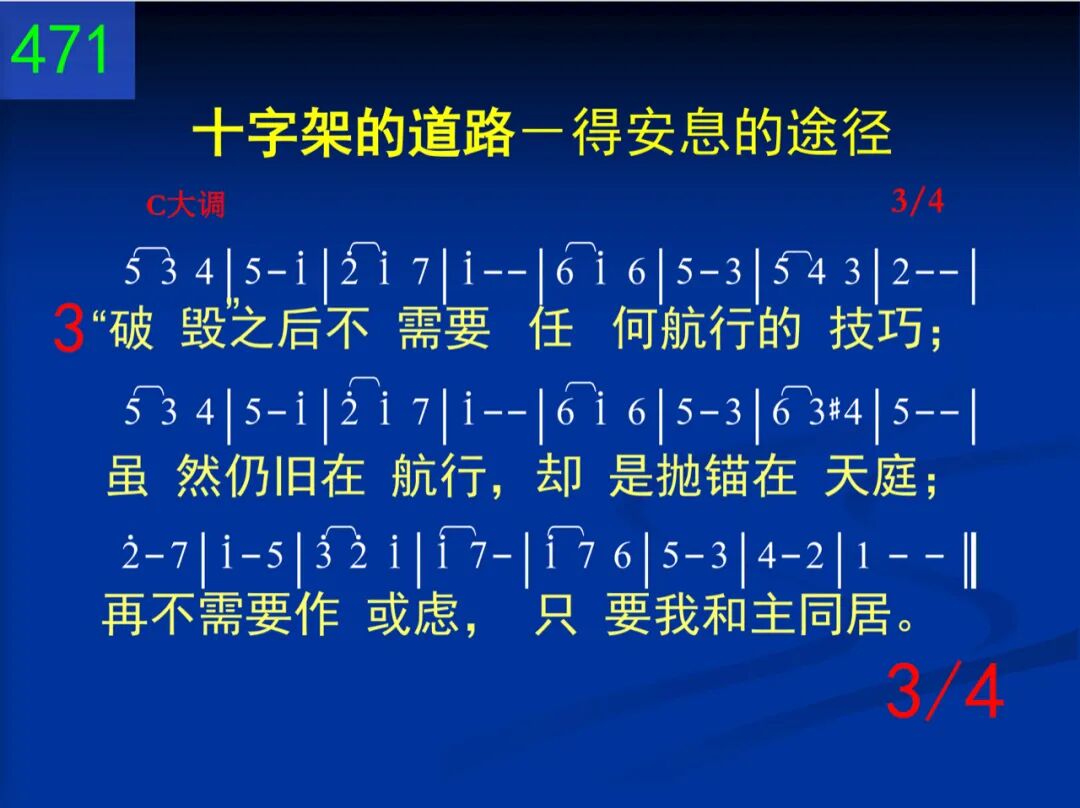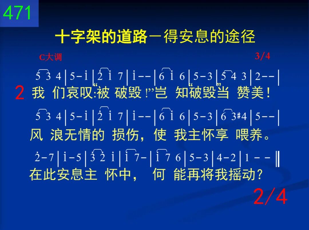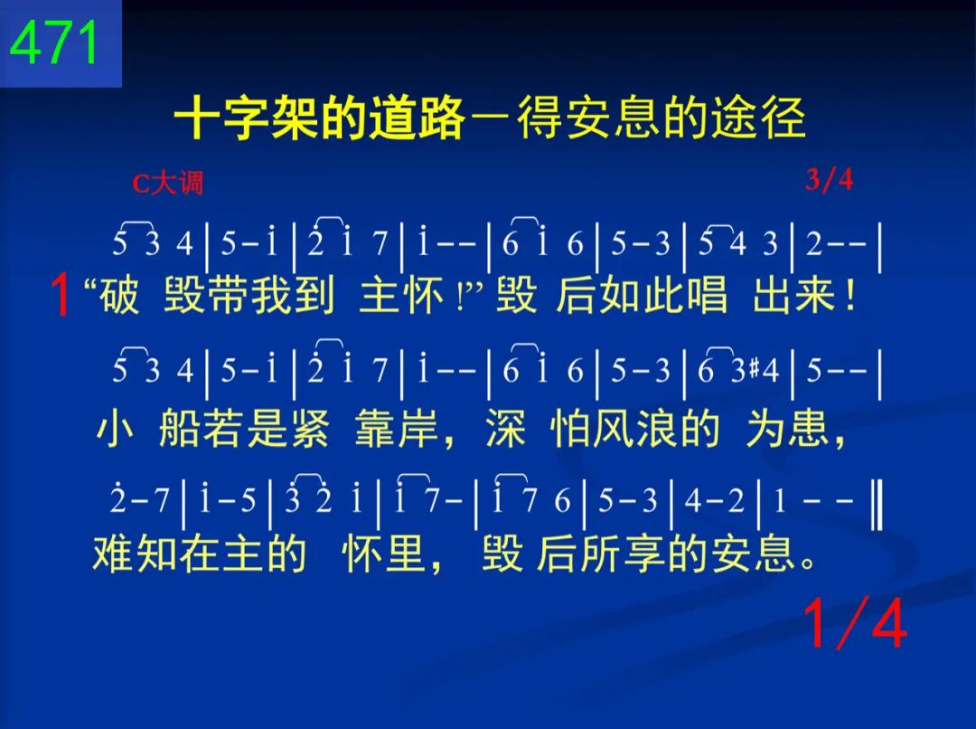 “破毁带我到主怀!”毁后如此唱出来!小船若是紧靠岸,深怕风浪的为患,难知在主的怀里,毁后所享的安息。 二 我们哀叹:“被破毁!”岂知“破毁”当赞美!风浪无情的损伤,使我主怀享喂养。在此安息主怀中,何能再将我摇动? 三 “破毁”之后,不需要任何航行的技巧;虽然仍旧在航行,却是抛锚在天庭;再不需要作或虑,只要我和主同居。 四 “破毁!”成为我纯益,其他航者要惊奇:像似残忍的摧毁,实是化装的恩惠!毁后乃是在主手,有主自己来看守。