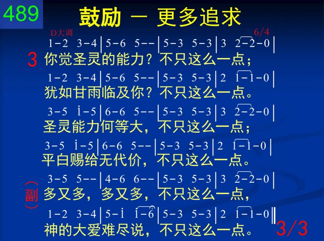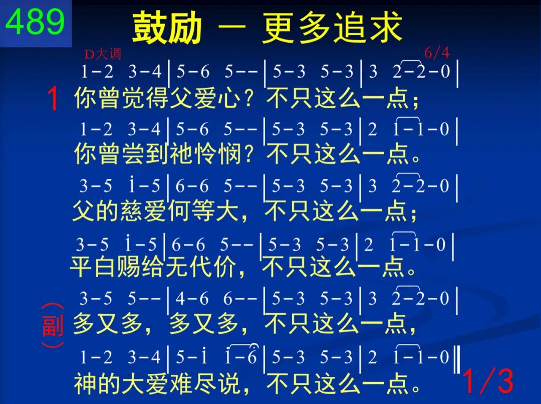 你曾觉得父爱心?不只这么一点;你曾尝到祂怜悯?不只这么一点。父的慈爱何等大,不只这么一点;平白赐给无代价,不只这么一点。 多又多,多又多,不只这么一点,神的大爱难尽说,不只这么一点。 二 你曾觉得主亲近?不只这么一点;祂的同在乐你心?不只这么一点;主的恩典何等大,不只这么一点;平白赐给无代价,不只这么一点。 多又多,多又多,不只这么一点,神的大爱难尽说,不只这么一点。 三 你觉圣灵的能力?不只这么一点;犹如甘雨临及你?不只这么一点。圣灵能力何等大,不只这么一点;平白赐给无代价,不只这么一点。 多又多,多又多,不只这么一点,神的大爱难尽说,不只这么一点。