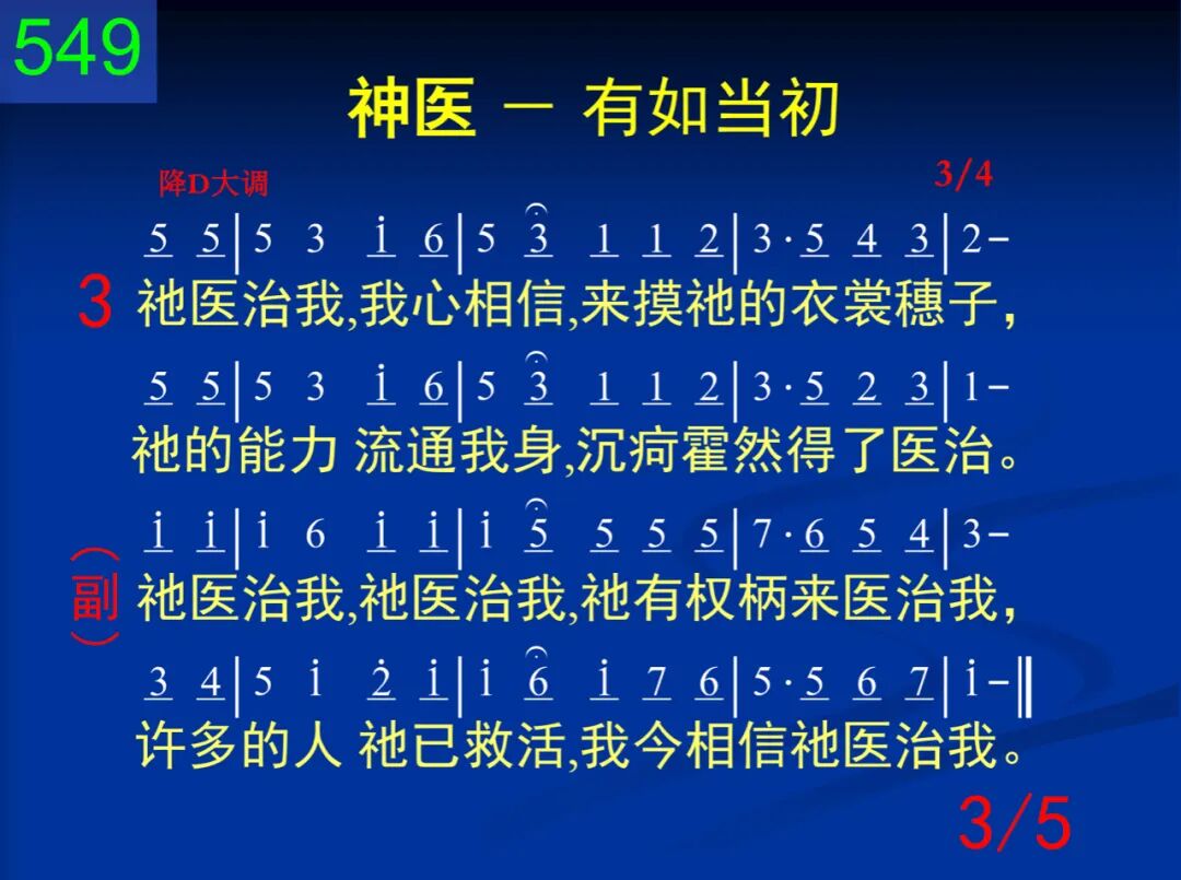 祂医治我,赞美祂名!我要歌颂祂的救赎;祂释放我脱离疾病,大能的主是我大夫。 祂医治我,祂医治我,祂有权柄来医治我,许多的人祂已救活,我今相信祂医治我。 二 祂医治我,我用信心简单相信祂说的话;满有希望,满有安宁,信祂必使我离病榻。 祂医治我,祂医治我,祂有权柄来医治我,许多的人祂已救活,我今相信祂医治我。 三 祂医治我,我心相信,来摸祂的衣裳繸子,祂的能力流通我身,沉疔霍然得了医治。 祂医治我,祂医治我,祂有权柄来医治我,许多的人祂已救活,我今相信祂医治我。 四 祂医治我,有如当初祂来担当疾病、罪过;祂的大能依然如故,我的救主永远活着。 祂医治我,祂医治我,祂有权柄来医治我,许多的人祂已救活,我今相信祂医治我。 五 祂医治我,我已求寻许多次数,但未得着;如今我是全心相信,因信,祂今使我再活。 祂医治我,祂医治我,祂有权柄来医治我,许多的人祂已救活,我今相信祂医治我。