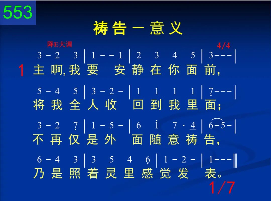 主阿,我要安静在你面前,将我全人收回到我里面;不再仅是外面随意祷告,乃是照着灵里感觉发表。 二 主,你好像是在天上听我,实在你是在我里面住着;好像是我向你呼求、祷告,实在是你在我里面发表。 三 有时我虽没有话语达意,但我能随那灵深深叹息;不是我在外面向你求讨,乃是你在里面藉我发表。 四 我愿在此吸取你的自己,吃你喝你,享受你的供给;好叫我能真实与你相交,让你从我里面得着发表。 五 在这交通里面,你光照亮,你血也要将我洗得清爽;不仅使我能得彻底光照,并且使你能有清楚发表。 六 在此你的膏油多方涂抹,将你涂我里面越过越多;你的成分加多,我的减少,你就从我得着更多发表。 七 在此向你开启,让你注入,也要向人敞开,让你流出;在你活水流中与人相交,好叫你能得着丰满发表!