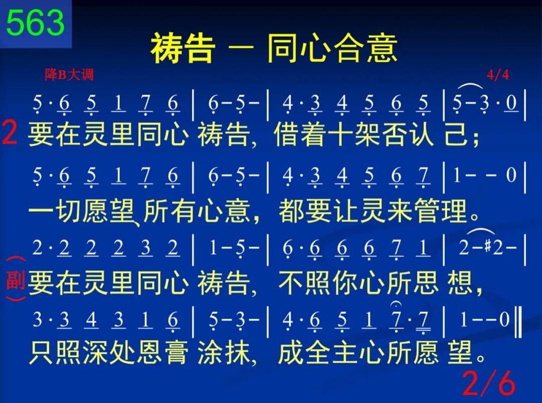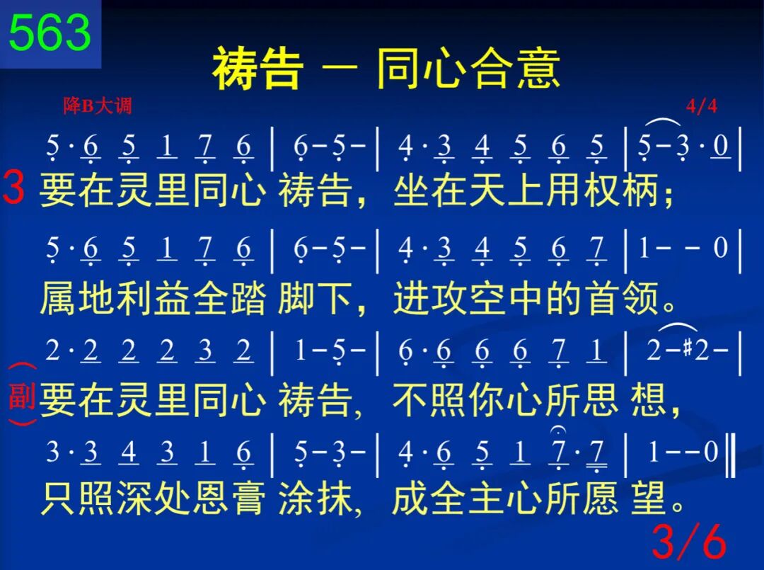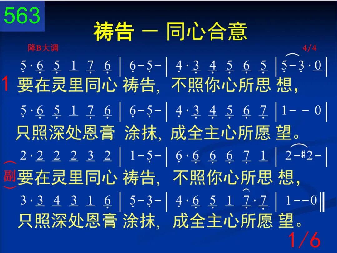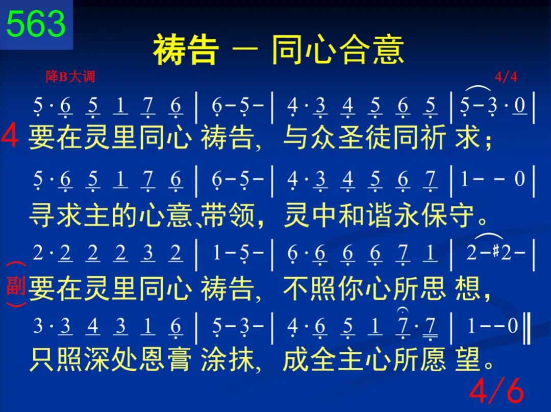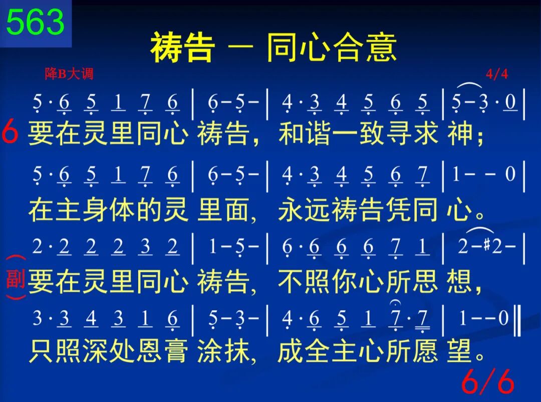要在灵里同心祷告,不照你心所思想,只照深处恩膏涂抹,成全主心所愿望。 要在灵里同心祷告,不照你心所思想,只照深处恩膏涂抹,成全主心所愿望。 二 要在灵里同心祷告,藉着十架否认己;一切愿望、所有心意,都要让灵来管理。 要在灵里同心祷告,不照你心所思想,只照深处恩膏涂抹,成全主心所愿望。 三 要在灵里同心祷告,坐在天上用权柄;属地利益全踏脚下,进攻空中的首领。 要在灵里同心祷告,不照你心所思想,只照深处恩膏涂抹,成全主心所愿望。 四 要在灵里同心祷告,与众圣徒同祈求;寻求主的心意、带领,灵中和谐永保守。 要在灵里同心祷告,不照你心所思想,只照深处恩膏涂抹,成全主心所愿望。 五 要在灵里同心祷告,儆醒、祷告要持久;为神国度和神荣耀,儆醒、祷告到成就。 要在灵里同心祷告,不照你心所思想,只照深处恩膏涂抹,成全主心所愿望。 六 要在灵里同心祷告,和谐一致寻求神;在主身体的灵里面,永远祷告凭同心。 要在灵里同心祷告,不照你心所思想,只照深处恩膏涂抹,成全主心所愿望。