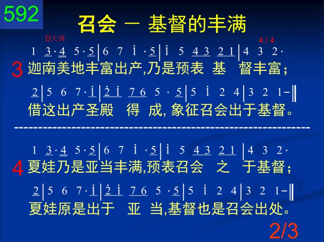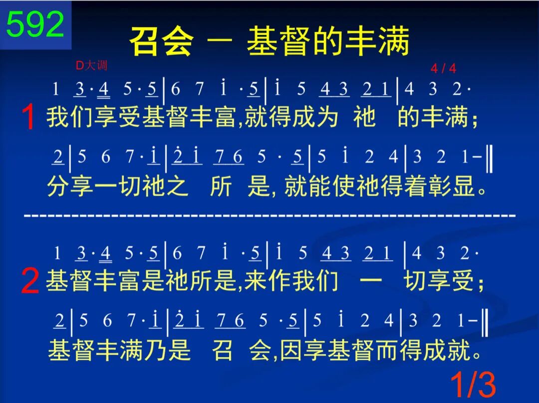 我们享受基督丰富,就得成为祂的丰满;分享一切祂之所是,就能使祂得着彰显。 二 基督丰富是祂所是,来作我们一切享受;基督丰满乃是召会,因享基督而得成就。 三 迦南美地丰富出产,乃是预表基督丰富;藉这出产圣殿得成,象征召会出于基督。 四 夏娃乃是亚当丰满,预表召会之于基督;夏娃原是出于亚当,基督也是召会出处。 五 丰富是我里面基督,丰满是我外面召会;充满基督,作祂表现,得与基督同样宝贵。