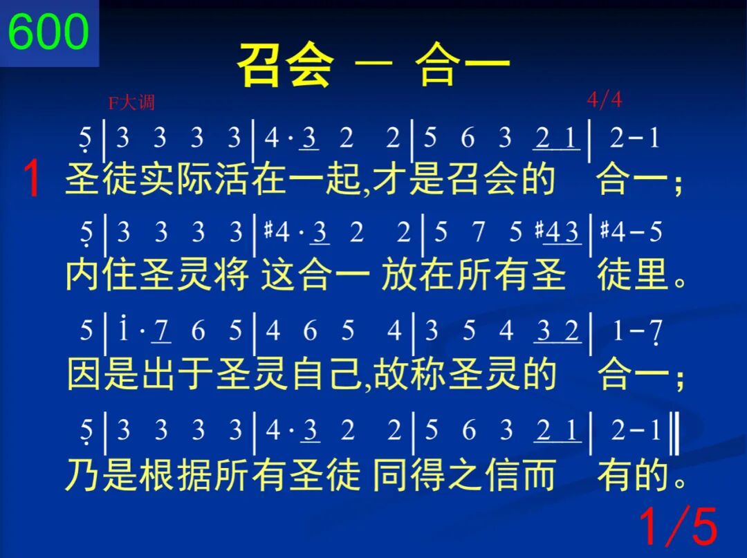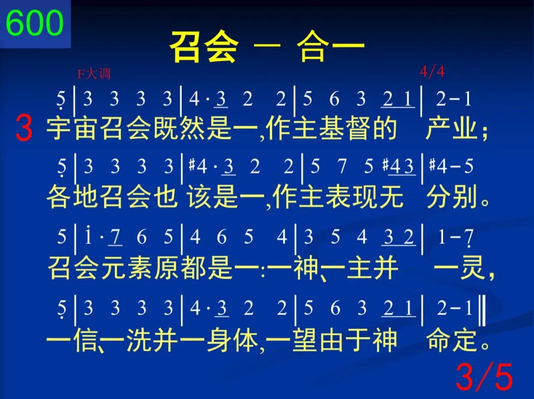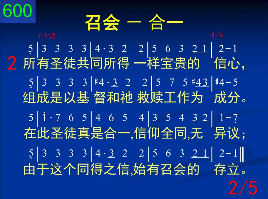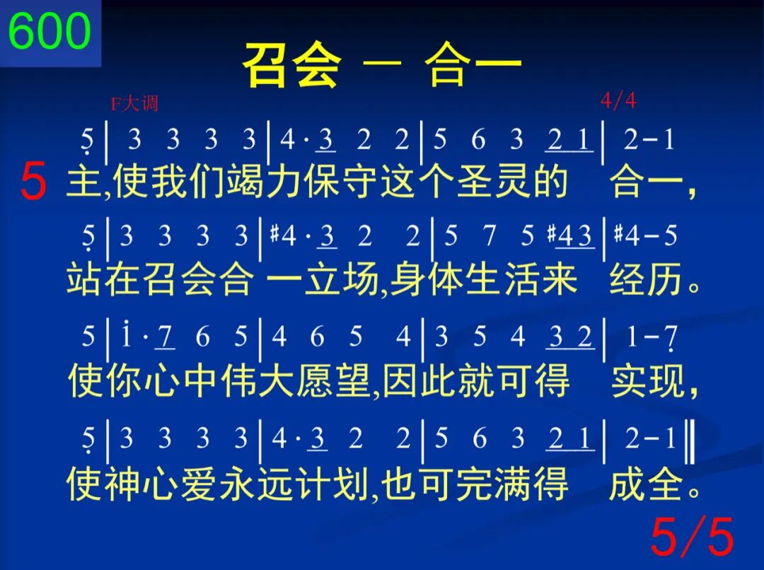 圣徒实际活在一起,才是召会的合一;内住圣灵将这合一放在所有圣徒里。因是出于圣灵自己,故称圣灵的合一;乃是根据所有圣徒同得之信而有的。 二 所有圣徒共同所得一样宝贵的信心,组成是以基督和祂救赎工作为成分。在此圣徒真是合一,信仰全同,无异议;由于这个同得之信,始有召会的存立。 三 宇宙召会既然是一,作主基督的产业;各地召会也该是一,作主表现无分别。召会元素原都是一:一神、一主并一灵,一信、一洗并一身体,一望由于神命定。 四 这“一”就是召会立场,圣徒共同的立场,就是合一独一立场,圣灵在我所愿望。藉此,召会就能实行真正实际的合一,她在各地所有出现也就因此得建立。 五 主,使我们竭力保守这个圣灵的合一,站在召会合一立场,身体生活来经历。使你心中伟大愿望,因此就可得实现,使神心爱永远计划,也可完满得成全。