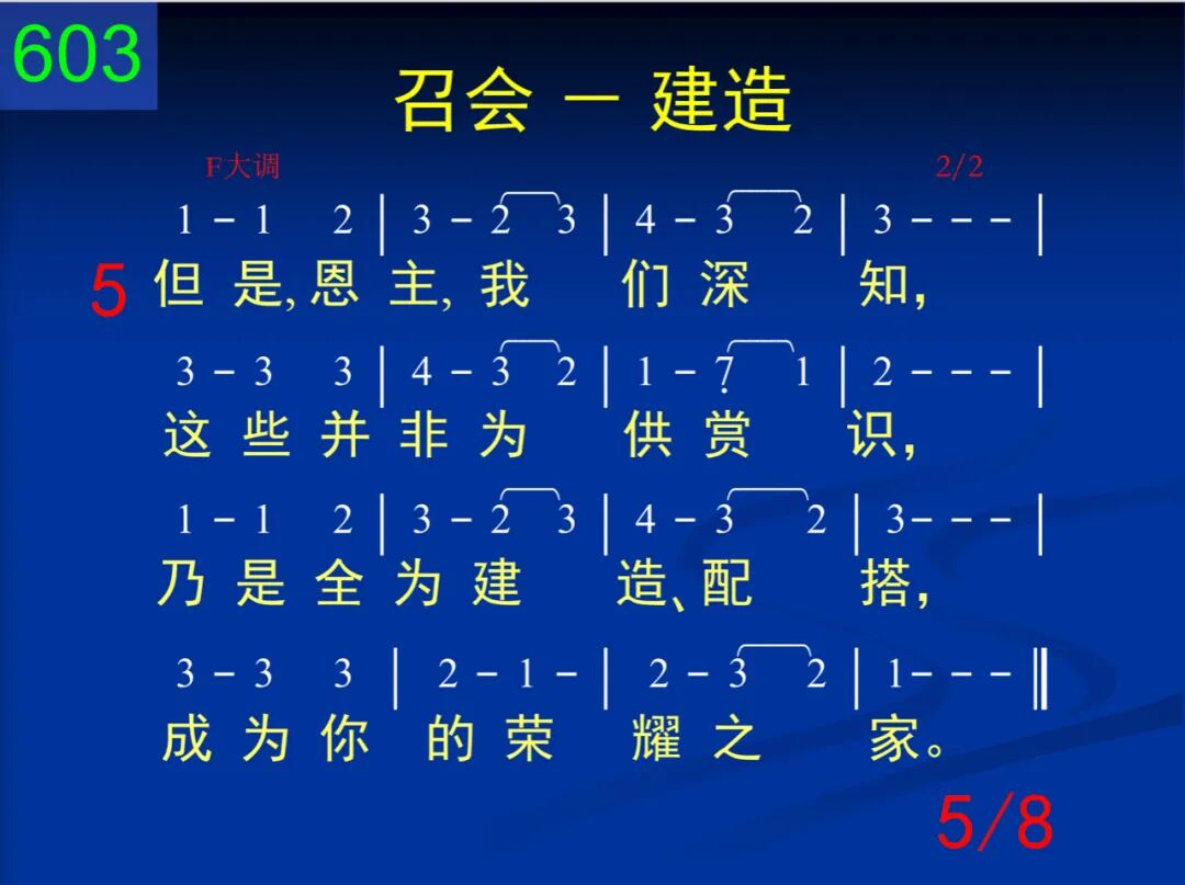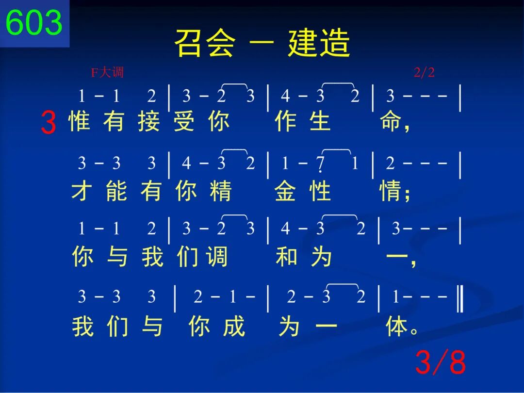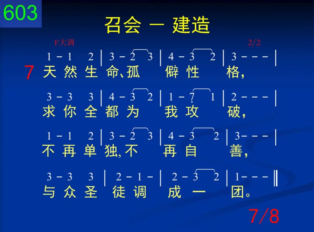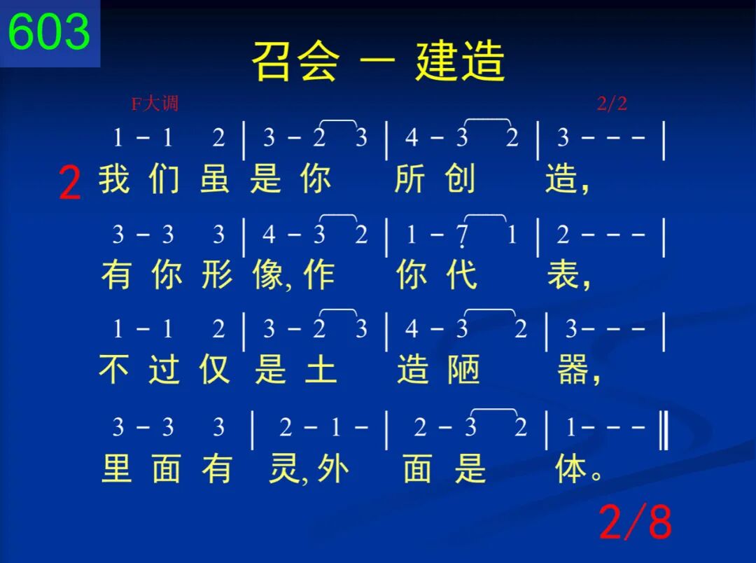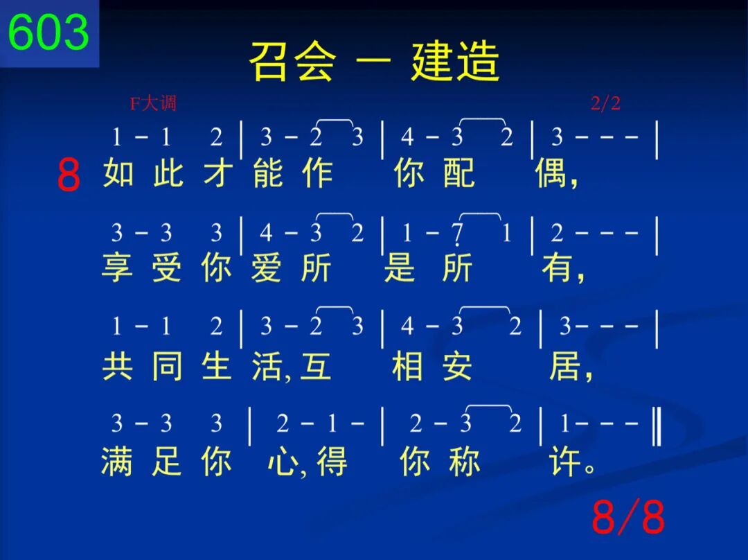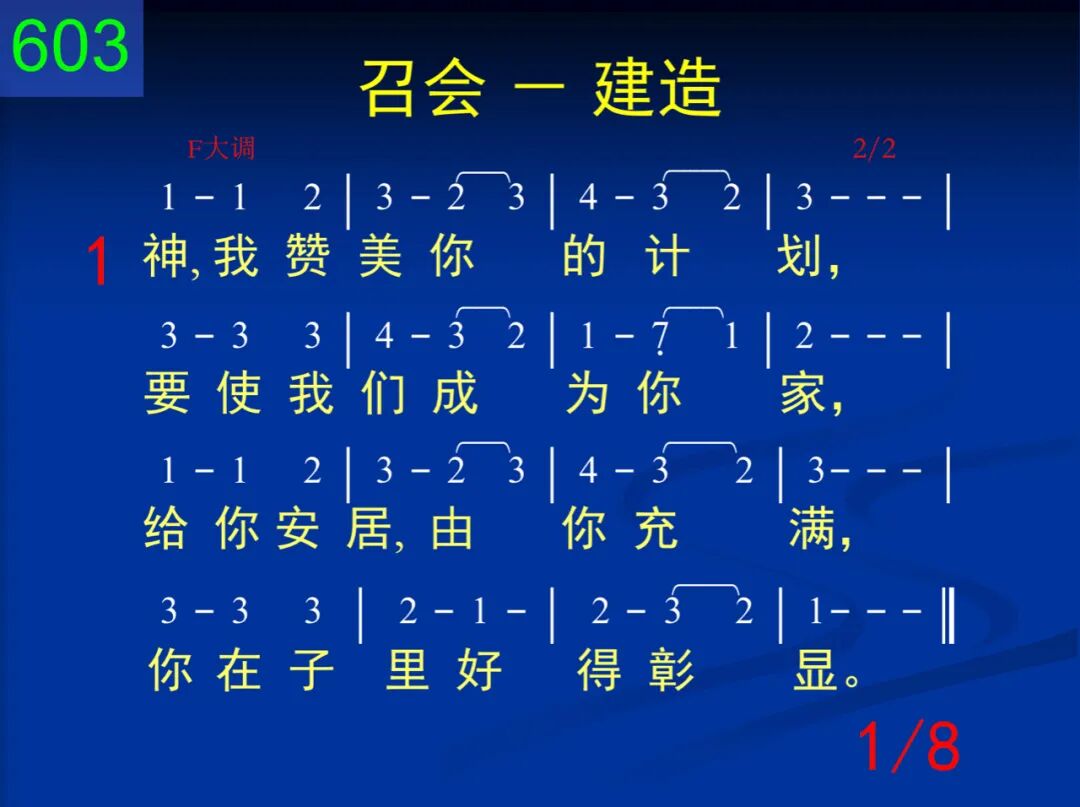 神,我赞美你的计划,要使我们成为你家,给你安居,由你充满,你在子里好得彰显。 二 我们虽是你所创造,有你形像,作你代表,不过仅是土造陋器,里面有灵,外面是体。 三 惟有接受你作生命,才能有你精金性情;你与我们调和为一,我们与你成为一体。 四 当你生命流通、滋润,浸透我的全心、全魂,我就变成珍珠、宝石,与你荣形一样一式。 五 但是,恩主,我们深知,这些并非为供赏识,乃是全为建造、配搭,成为你的荣耀之家。 六 主,我在此献上自己,求你接在建造手里,将我折服,将我联络,造成你能安居之所。 七 天然生命、孤僻性格,求你全都为我攻破,不再单独,不再自善,与众圣徒调成一团。 八 如此才能作你配偶,享受你爱所是所有,共同生活,互相安居,满足你心,得你称许。