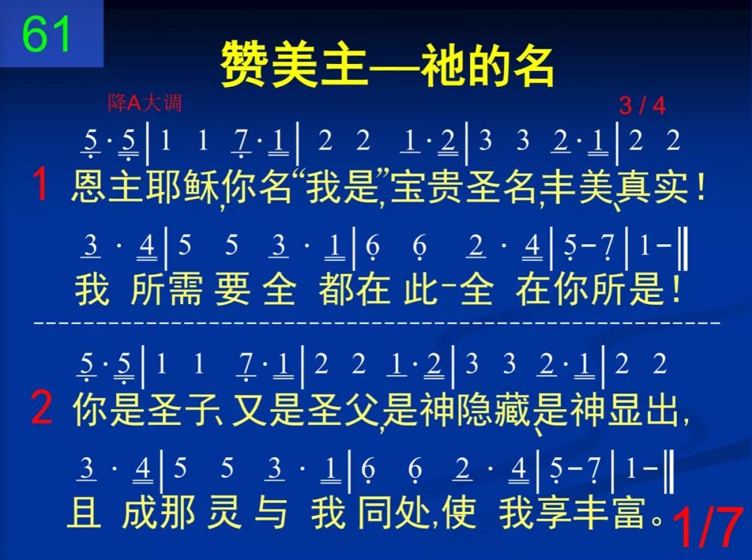 恩主耶稣,你名“我是,”宝贵圣名,丰美、真实!我所需要全都在此─全在你所是! 二 你是圣子、又是圣父,是神隐藏、是神显出,且成那灵与我同处,使我享丰富。 三 你是帐幕、你是圣殿,给神安居,将神彰显,使我在你与神相见,得享神肥甘。 四 你是羔羊、你是新郎,为娶新妇,将罪担当,为我舍己、为我受伤,使我得安康。 五 你是智慧、你是道路,照神旨意,为我部署,使我蒙恩,使我受福,纳我入正途。 六 你是公义、你是圣洁,与神相合,为神所悦,使我称义,使我圣别,能与神和谐。 七 你是生命、你是亮光,消除黑暗,吞灭死亡,使我复生,使我明亮,使我得释放。 八 你是复活、你是大能,冲破坟墓,胜过幽冥,使我刚强,使我得胜,使我占上风。 九 你是灵粮、你是活水,为作供应,甘愿降卑,解我饥渴,苏我困惫,作了我美味。 十 你是牧人、你是医生,为我舍命,医我疾病,保养、顾惜、安慰、引领,凡事都照应。 十一 你是祭司、你是君王,将我带进神的面光;你的权柄我得分享,地位何高尚! 十二 你是救赎、你是盼望,还要将我改变形状,使我完全与你相像,将你来显彰。 十三 还是荣耀、喜乐、平安、真理、恩典、活道、灵磐、日头、盾牌、居所、靠山,何人能尽言! 十四 你的所是永远、无限、长、阔、高、深、丰满、完全!岂只应付我的缺欠!且从我溢漫!