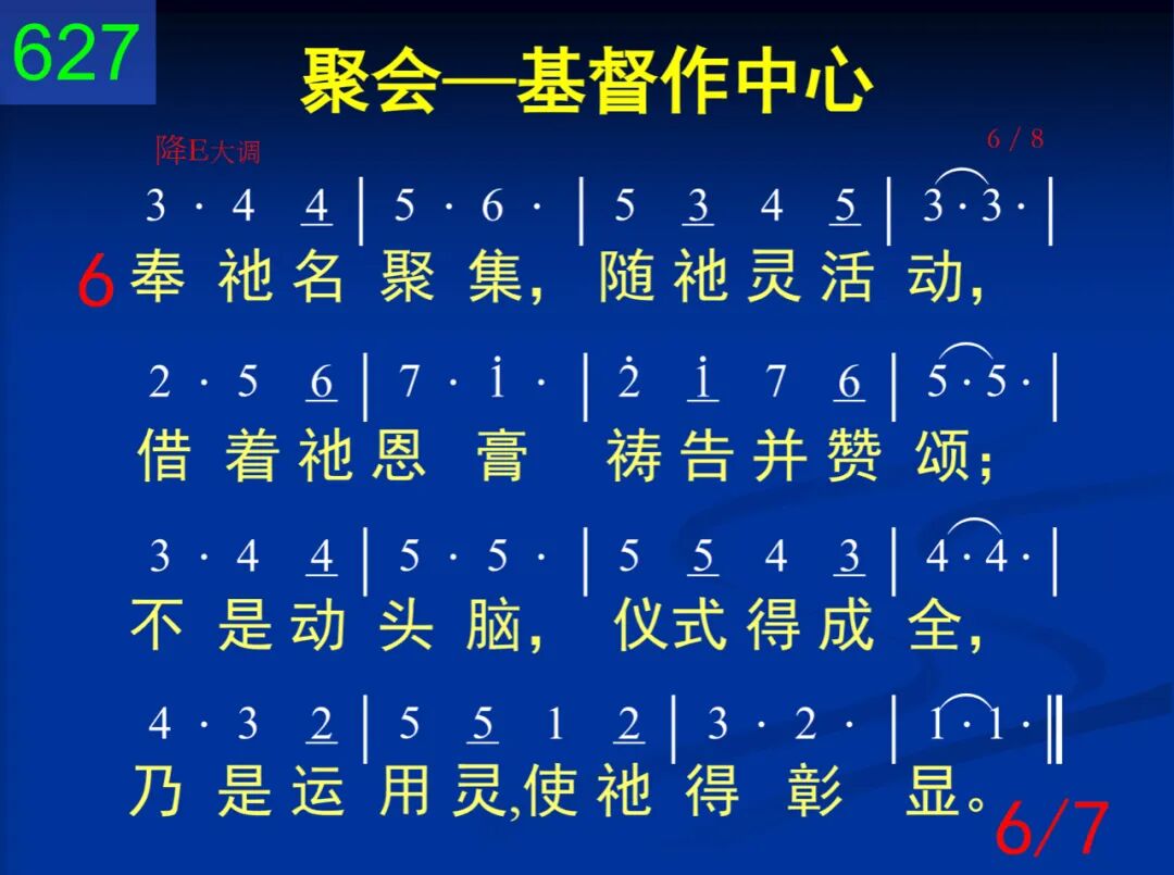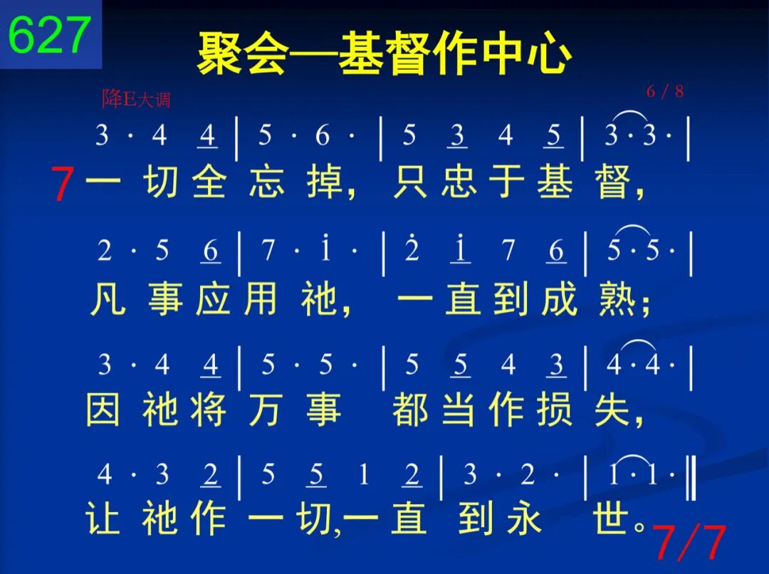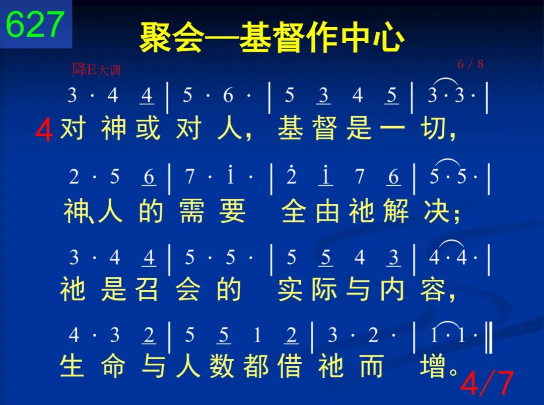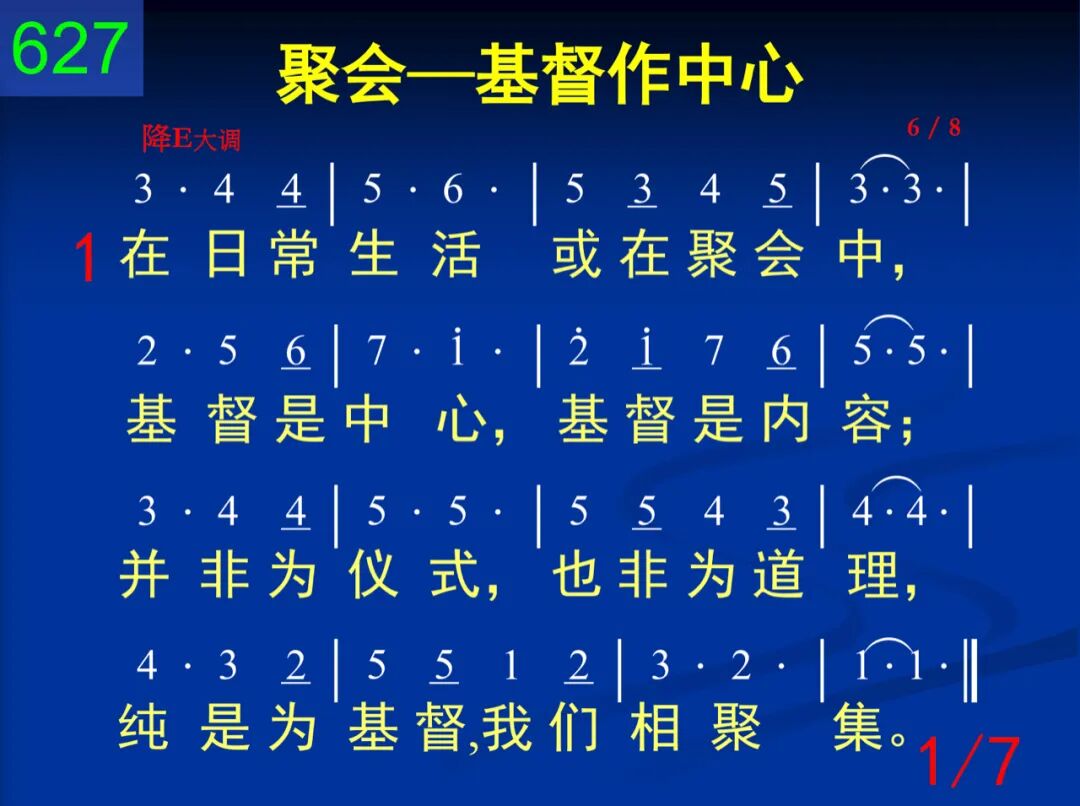 在日常生活或在聚会中,基督是中心,基督是内容;并非为仪式,也非为道理,纯是为基督,我们相聚集。 二 基督是道路,基督是亮光,凭祂而行动,由祂来照亮;基督是活水,基督是灵粮,喝祂并吃祂,从祂得喂养。 三 基督是真理,我们所见证,基督是生命,我们所供应,基督是恩主,我们所称誉,基督是元首,我们所高举。 四 对神或对人,基督是一切,神、人的需要全由祂解决;祂是召会的实际与内容,生命与人数都藉祂而增。 五 所献上一切诗歌和祷告,都要叫基督藉灵得发表;所有灵中的交通和事奉,都该是基督彰显的运行。 六 奉祂名聚集,随祂灵活动,藉着祂恩膏祷告并赞颂;不是动头脑,仪式得成全,乃是运用灵,使祂得彰显。 七 一切全忘掉,只忠于基督,凡事应用祂,一直到成熟;因祂将万事都当作损失,让祂作一切,一直到永世。