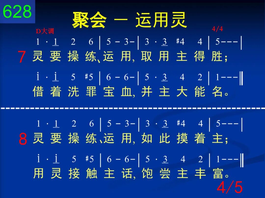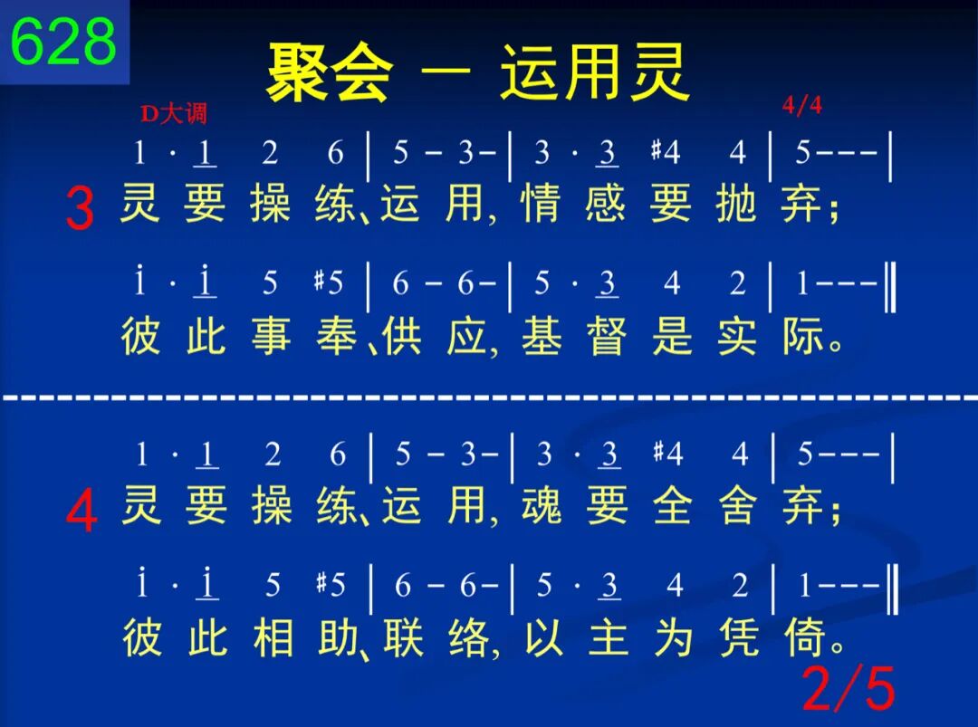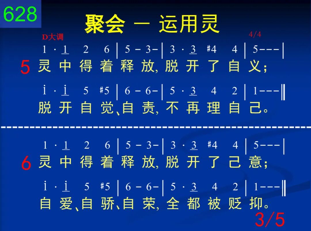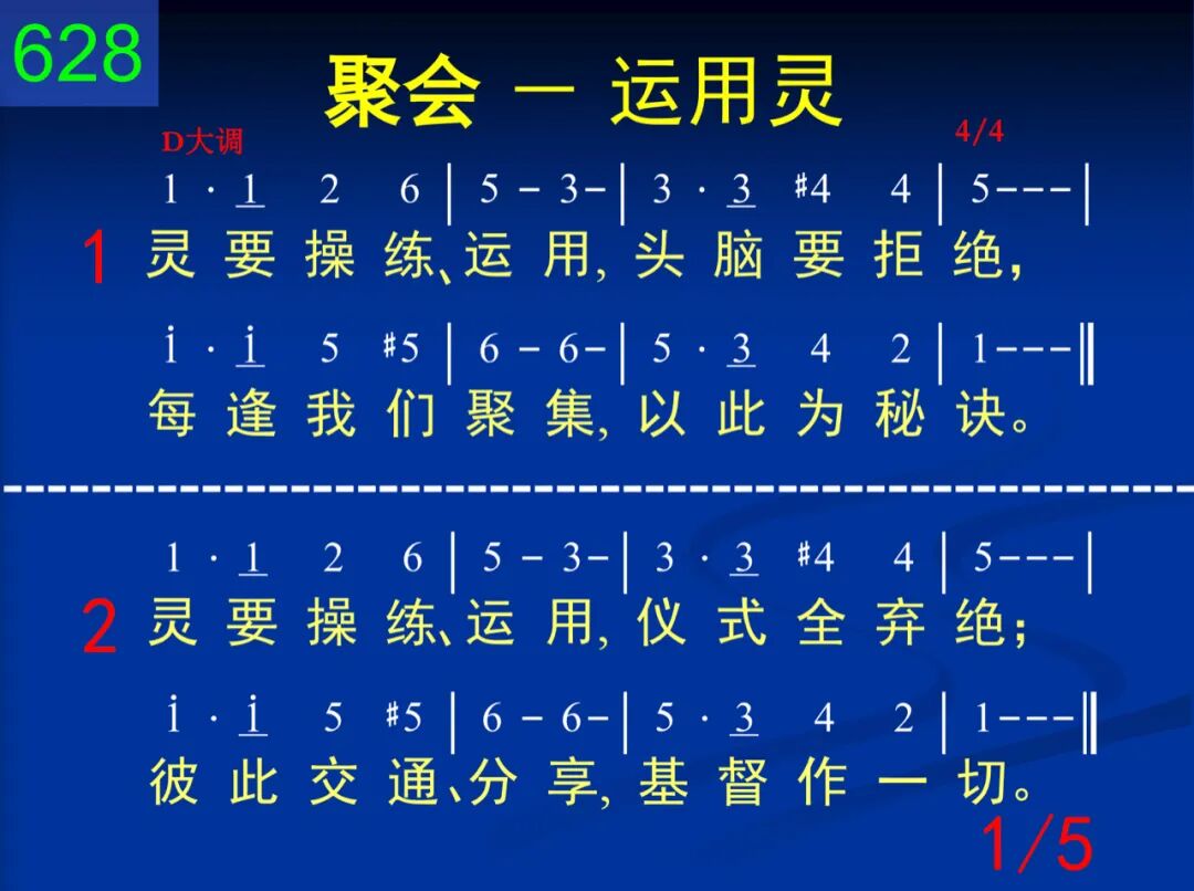 灵要操练、运用,头脑要拒绝,每逢我们聚集,以此为秘诀。 二 灵要操练、运用,仪式全弃绝;彼此交通、分享,基督作一切。 三 灵要操练、运用,情感要抛弃;彼此事奉、供应,基督是实际。 四 灵要操练、运用,魂要全舍弃;彼此相助、联络,以主为凭倚。 五 灵中得着释放,脱开了自义;脱开自觉、自责,不再理自己。 六 灵中得着释放,脱开了己意;自爱、自骄、自荣,全都被贬抑。 七 灵要操练、运用,取用主得胜;藉着洗罪宝血,并主大能名。 八 灵要操练、运用,如此摸着主;用灵接触主话,饱尝主丰富。 九 乃是藉着用灵,基督被见证;乃是藉着用灵,人们得供应。 十 灵要操练、运用,这是我需要;灵要操练、运用,如此主引导。