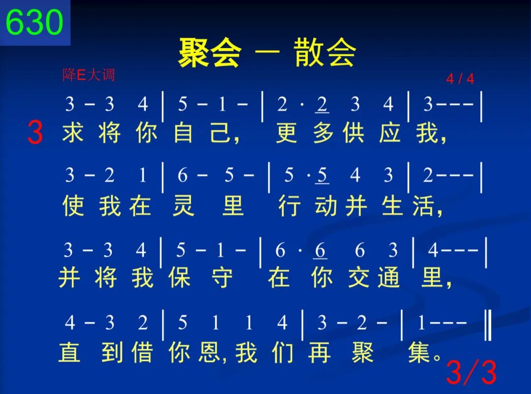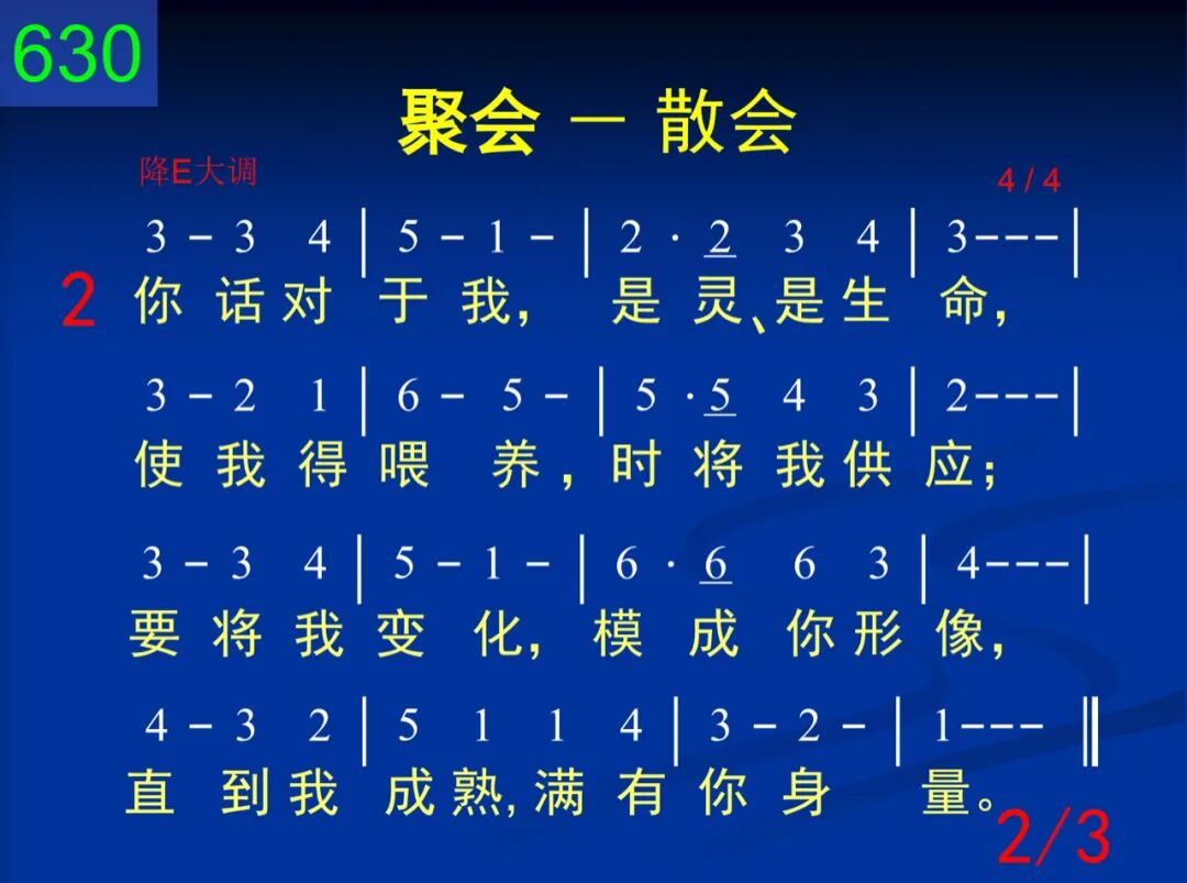 为着你同在并你活的话,离去前,赞美还要向你发;我们已为你宝贵所吸引,你有力信息已抓住我心。 二 你话对于我,是灵、是生命,使我得喂养,时将我供应;要将我变化,模成你形像,直到我成熟,满有你身量。 三 求将你自己,更多供应我,使我在灵里行动并生活,并将我保守在你交通里,直到藉你恩,我们再聚集。