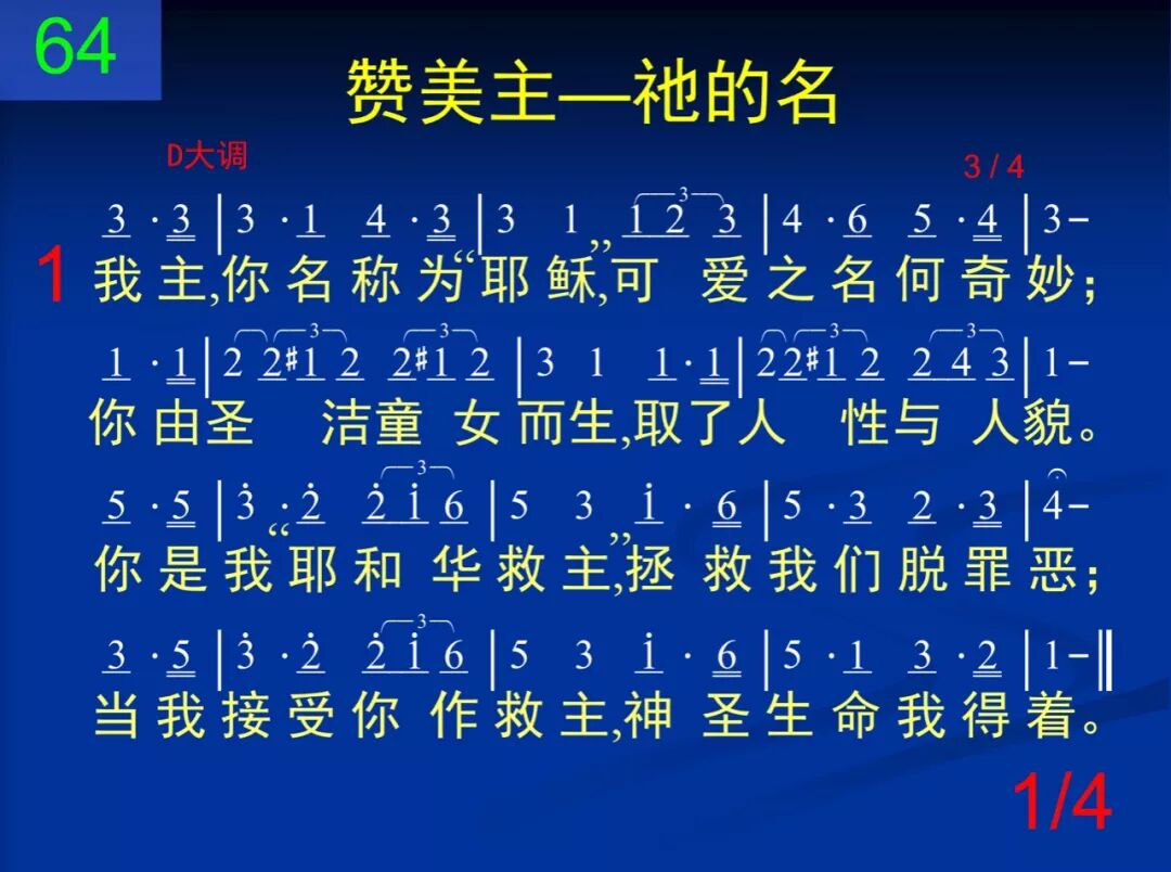 我主,你名称为“耶稣,”可爱之名何奇妙;你由圣洁童女而生,取了人性与人貌。你是我“耶和华救主,”拯救我们脱罪恶;当我接受你作救主,神圣生命我得着。 二 你名也被称为“基督,”荣耀职事的名称;你确是神的受膏者,神从永远所选定。主,你是神的弥赛亚,神已因爱立了你,要你彰显祂的荣耀,并且完成祂心意。 三 你也称为“以马内利,”你是“神与人同在;”藉恩神与人性调和,永远不能再分开。神在肉身得着彰显,满有真理和恩典;在你我见神的荣耀,并且得着神丰满。 四 哦主,我们珍爱你名,你名所示何丰富;你名价值和其甘美,因爱永远要守住。宝贵救主,荣耀基督,敬拜、爱戴全归你;亲爱救主、以马内利,我要高举永无已!