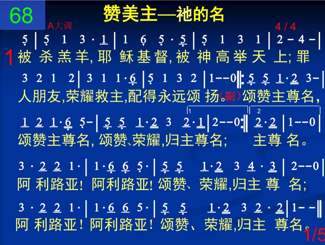 被杀羔羊,耶稣基督,被神高举天上;罪人朋友,荣耀救主,配得永远颂扬。 颂赞主尊名,颂赞主尊名,颂赞、荣耀,归主尊名。阿利路亚!阿利路亚!颂赞、荣耀,归主尊名。阿利路亚!阿利路亚!颂赞、荣耀,归主尊名。 二 超乎万名之上的名,已经赐给耶稣;天上、地上一切众生,无不称祂为主。 颂赞主尊名,颂赞主尊名,颂赞、荣耀,归主尊名。阿利路亚!阿利路亚!颂赞、荣耀,归主尊名。阿利路亚!阿利路亚!颂赞、荣耀,归主尊名。 三 天使下拜,天军俯伏,万有也都屈膝,敬拜救主,高举基督,颂赞羔羊不已。 颂赞主尊名,颂赞主尊名,颂赞、荣耀,归主尊名。阿利路亚!阿利路亚!颂赞、荣耀,归主尊名。阿利路亚!阿利路亚!颂赞、荣耀,归主尊名。 四 蒙恩罪人也要欢呼,同声颂赞救主:为我流血,将我救赎,使我永远得福。 颂赞主尊名,颂赞主尊名,颂赞、荣耀,归主尊名。阿利路亚!阿利路亚!颂赞、荣耀,归主尊名。阿利路亚!阿利路亚!颂赞、荣耀,归主尊名。 五 但愿权柄、智慧、丰富、尊贵、荣耀、王权,归给羔羊,救主基督,直到永永远远! 颂赞主尊名,颂赞主尊名,颂赞、荣耀,归主尊名。阿利路亚!阿利路亚!颂赞、荣耀,归主尊名。阿利路亚!阿利路亚!颂赞、荣耀,归主尊名。